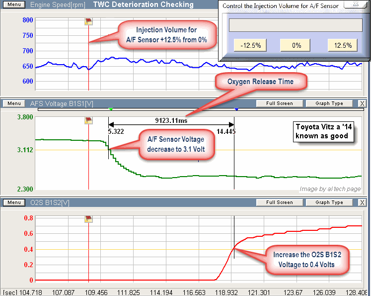 Среди многих приложений диагностической программы Toyota Techstream особенно выделяется активный тест "A/F Control", который позволяет отключить обратную связь по кислородным датчикам и проверить поведение/реакцию системы управления двигателем, кислородных датчиков и состояние катализатора при/на принудительное изменение состава воздушно-топливной смеси.