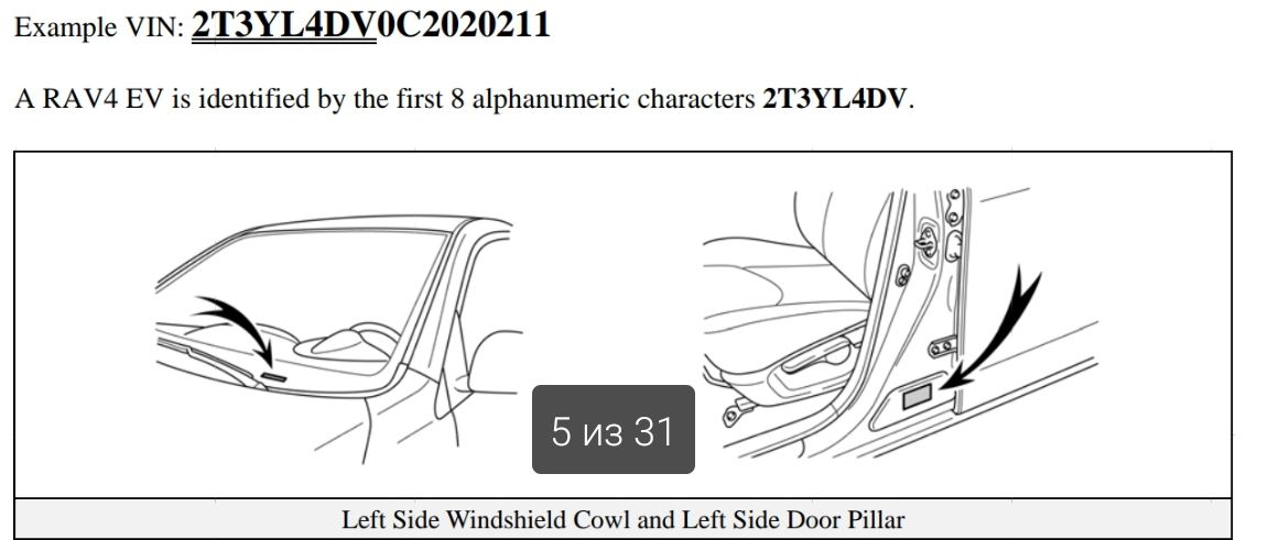 *J (World Source - место изготовления/сборки) = Japan (N = NUMMI, 2 = Canada: TMMC. 3 = Mexico: TMMBC, 4 = USA: TMMK, 5 = USA: TMMI & TMMCA, S - Plant: PRINCETON) и т.д. T ( Manufacturer) = Toyota E (Vehicle Type) = Multipurpose Passenger Vehicle (D, K, X, 1 = Passenger Vehicle; D, E, L = Multipurpose Passenger Vehicle