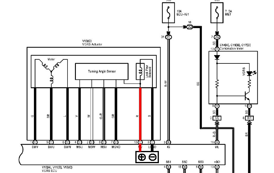 Я спрашивал о попытке Unlock the VGRS actuator НЕ с помощью описанного внешнего подключения аккумулятора к этому соленоиду, а посредством Techstream, когда actuator Lock will be disengaged во время выполнения функции "steering angle adjust":