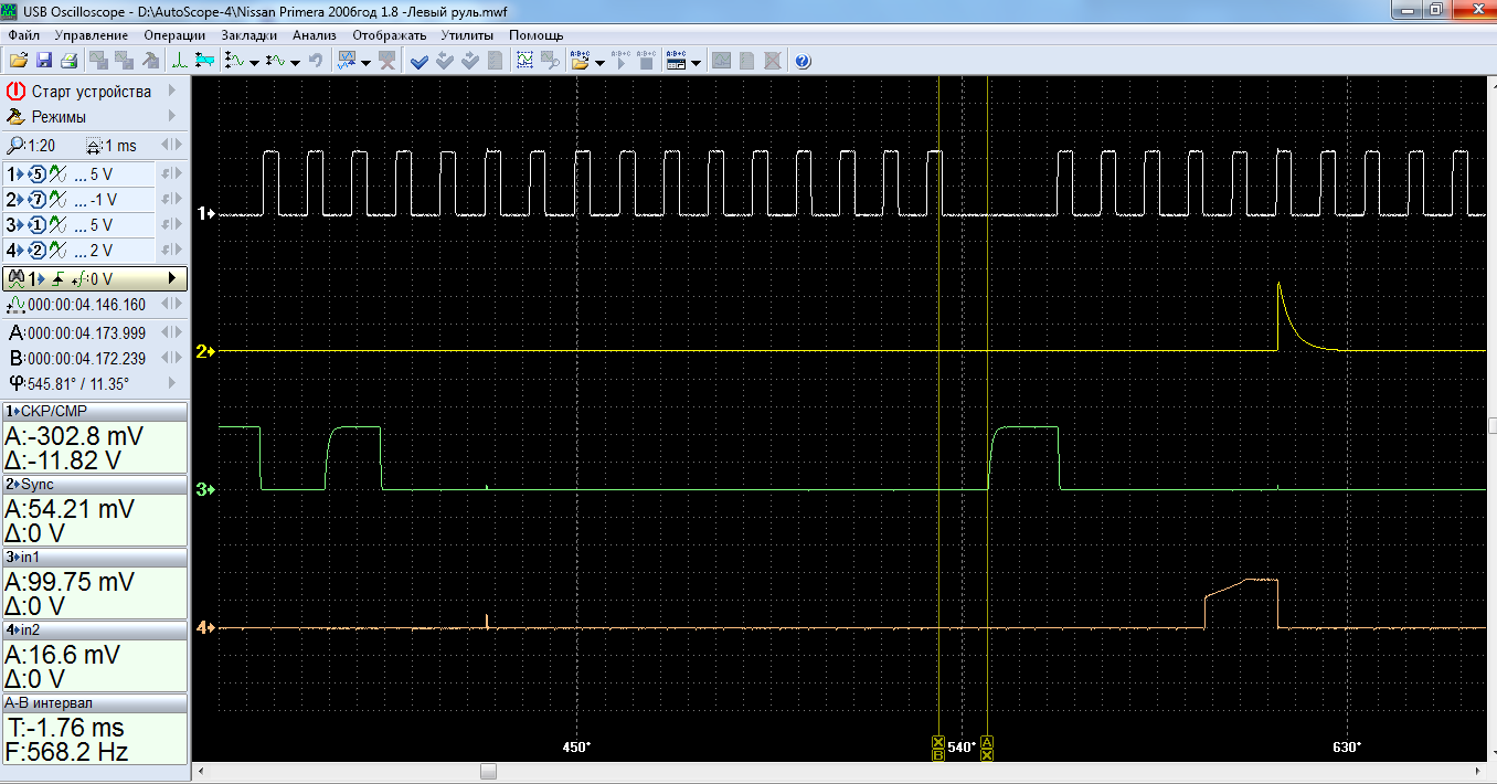 Разница в положении ДО и ПОСЛЕ замены цепи и пр. в ваших осциллограммах - не менее 14 градусов угла поворота коленвала (определяется простой арифметической пропорцией)Daimler2000 писал(а):...Метки сравнили по WOW. Градусы пока не считал, просчитывал ранее, сравнивая с другими получалось около 11.5