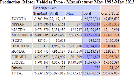 По этим таблицам производства авто в Японии можно "заценить" насколько объемы Тойоты больше чем у других автобрендов этой страны: По поводу борьбы с токсичными выбросами в различных государствах - позже.