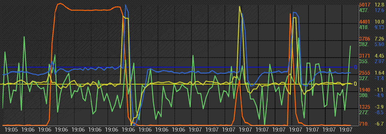 Но в данном случае выходит, что ось нулевого уровня у каждого параметра в другом месте, что мягко говоря, затрудняет восприятеи графиков и тем более, их анализ. Да и разный маштаб - не позволяет адекватное сравнение их значений