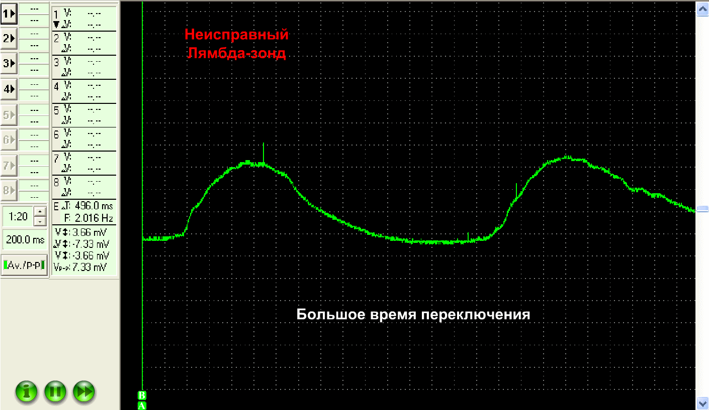 Для анализа исправности вашего HO2S необходимо чтобы на осциллограмме (в идеальном случае) присутствовали