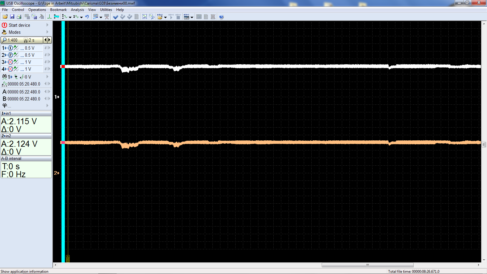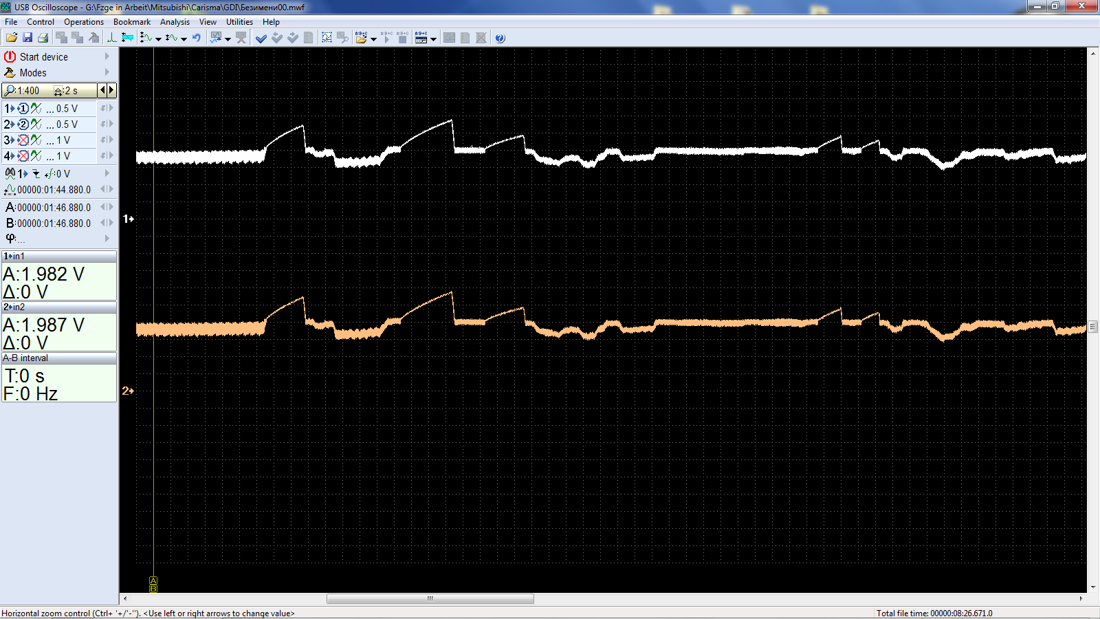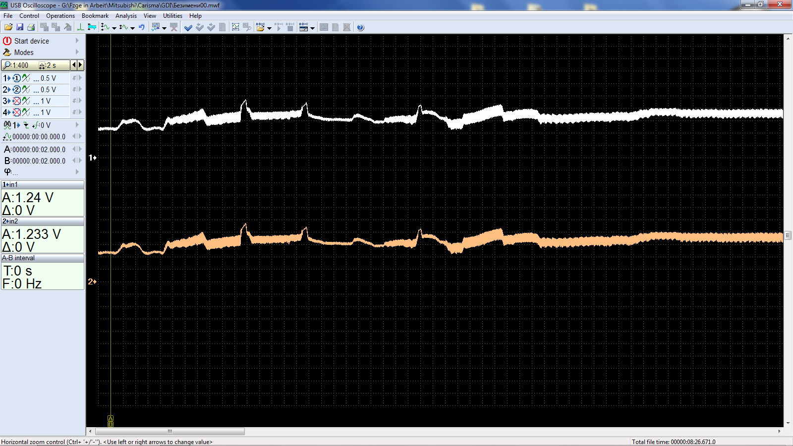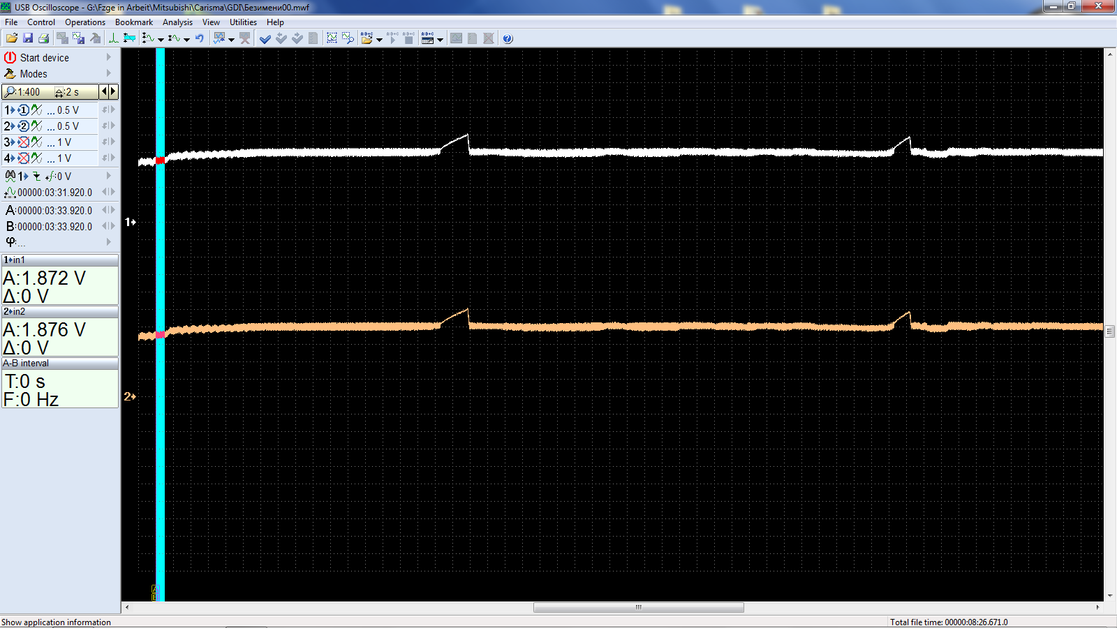 Проверил прохождение сигнала датчика (провод?) от датчика к ЭБУ при пробной поездке – моё мнение - в порядке: ,, ,,