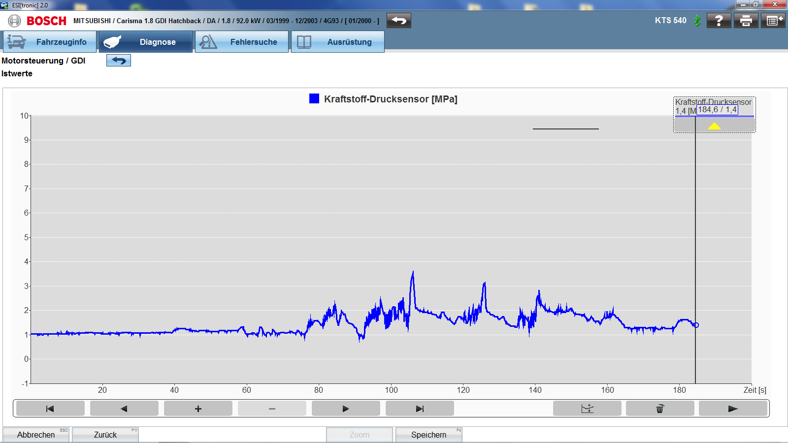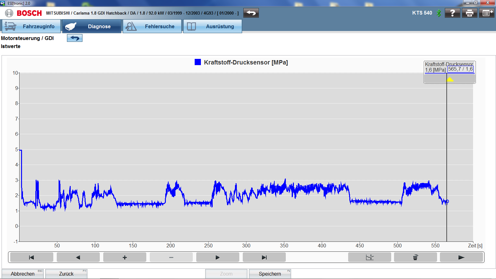 Ездил с Бошевским КТС и записал текущие данные датчика давления: