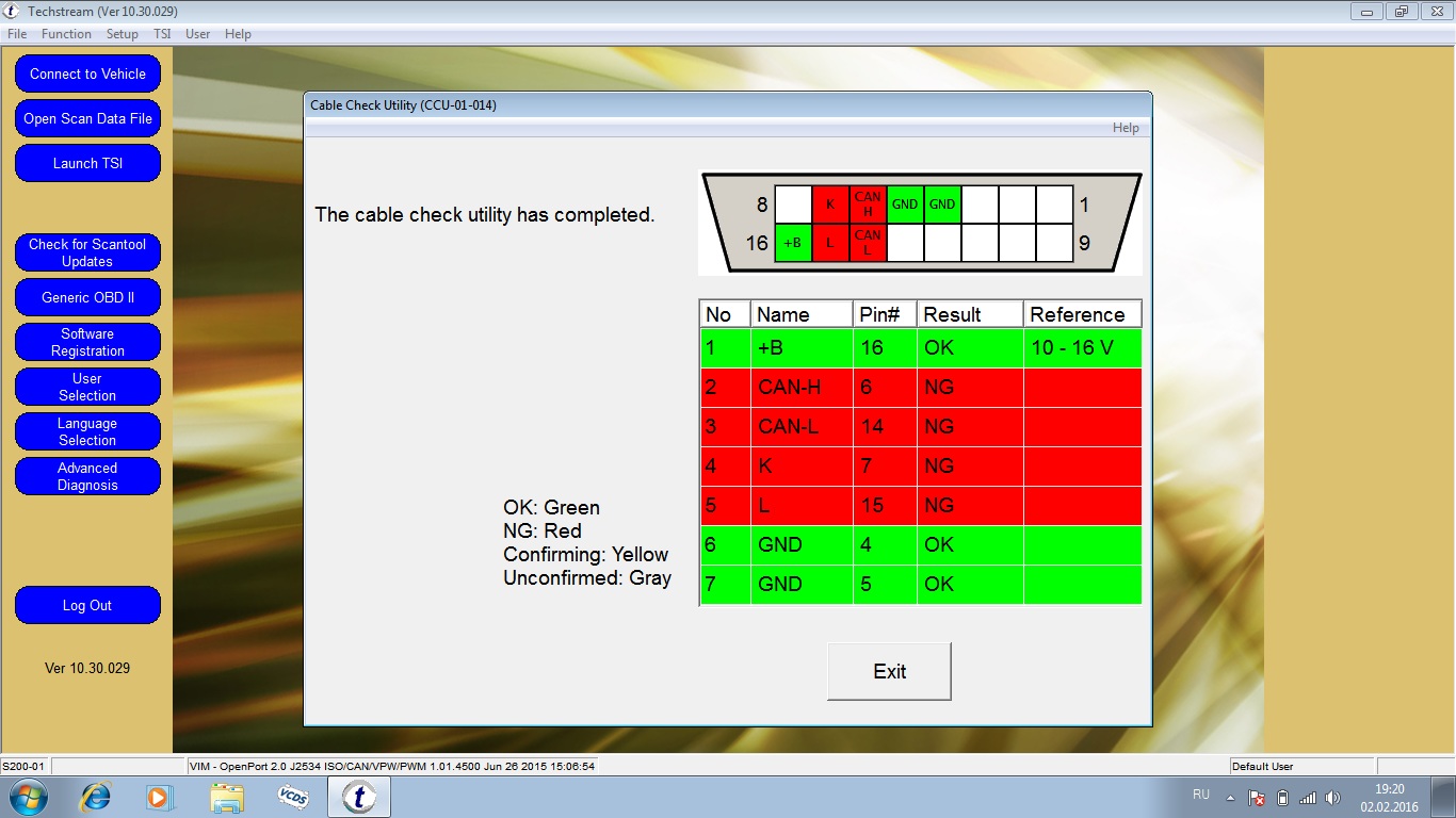 Это значения напряжения при включенном зажигании, именно тогда когда нет связи с автомобилем вообще, и именно тогда и сделан тест Cable Check. Как только авто закрыто и заведено с автозапуска при прохождении теста кан-шина отвечает и горит в утилите зеленым - соответственно именно тогда и сделан тест здоровья, т.е. на заведенном автомобиле. Но стоит заглушить - опять не горит приборка, нет запуска и нет диагностики.alflash писал(а):Это данные когда "все ок" или когдаMarcinkevich писал(а):14 - белый = 2.38В