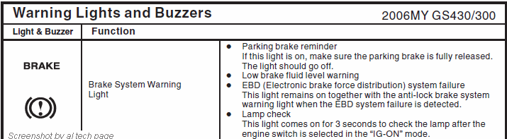Brake control warning light
