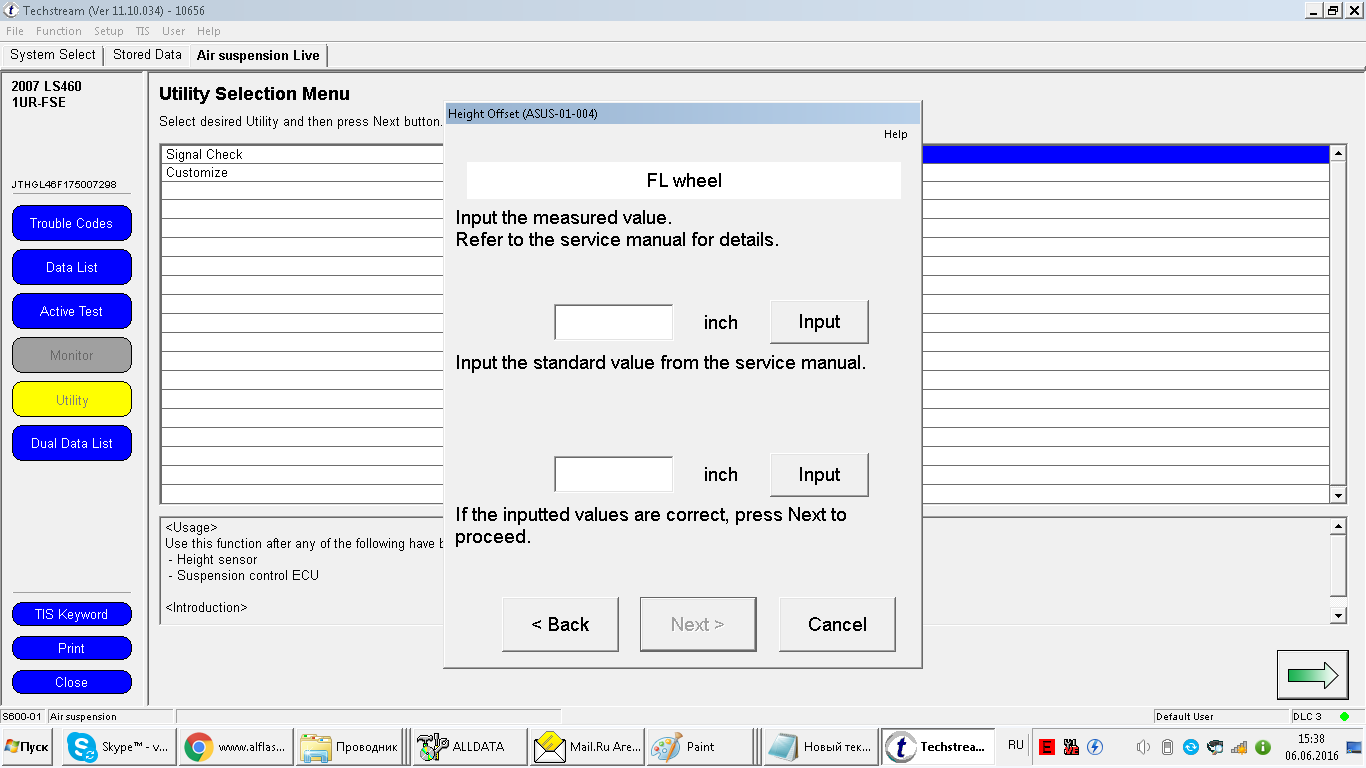 LS 460-калибровка пневмоподвески.