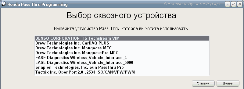 И после выбора одного из ваших аппаратных J2534 Pass-Thru интерфейсов, например,
