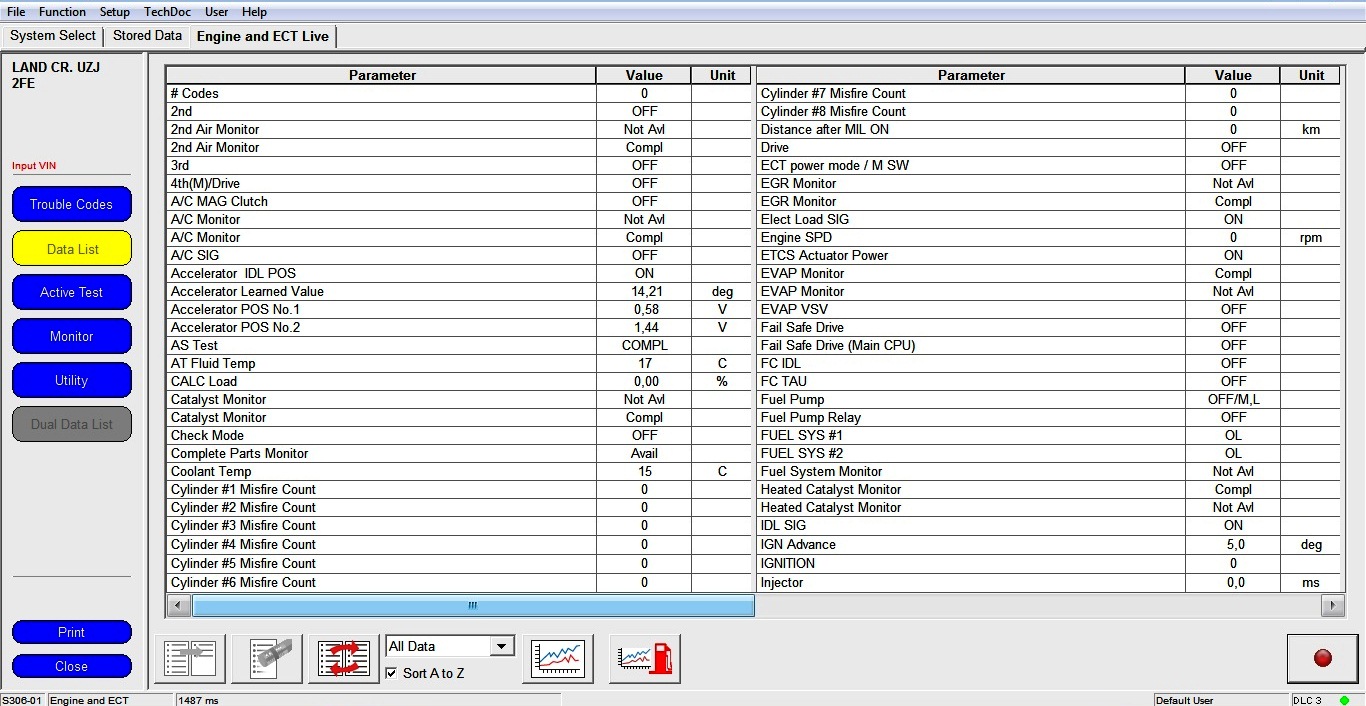 2. Указанных параметров тоже нет. Перечень All Data прилагаю в скрине.