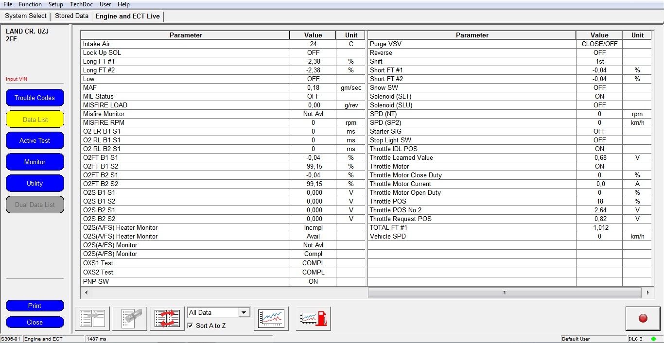 3. Записать логи работы системы ABS/VSC желательно в режиме All Data при двух состояниях. Обратить внимание на параметр Steering Angle Sensor, Deg.