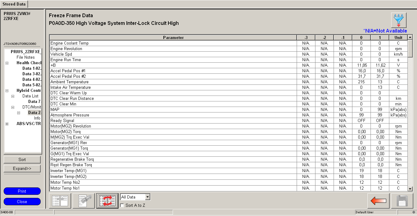 то включится фильтр и будут отображаться все пять пакетов FFD* этого кода неисправности, но только "важных", c точки зрения ПО Techstream, параметров" (Filter with Important Parameters). Хотя я увидел только именение сортировки (вверху те, которые изменялись).
