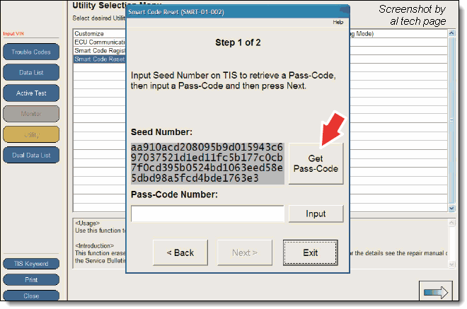 To access the Key Code Reset, select: Immobilizer / Utility / Key Code Reset