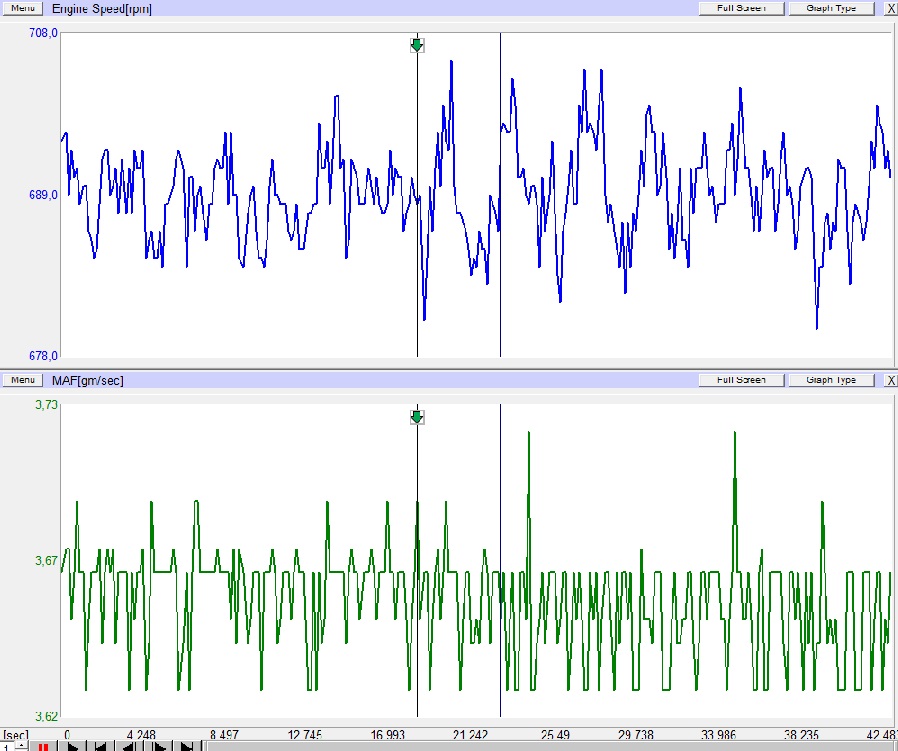 "Дергания" были, но ни один параметр их не заметил ... Я предполагаю, что их причина "вне зоны" проверямых параметров. Либо в Data List слишком много ненужных данных, которые понапрасну увеличивают время обмена пакетами данных (между компом и Techstream) :(