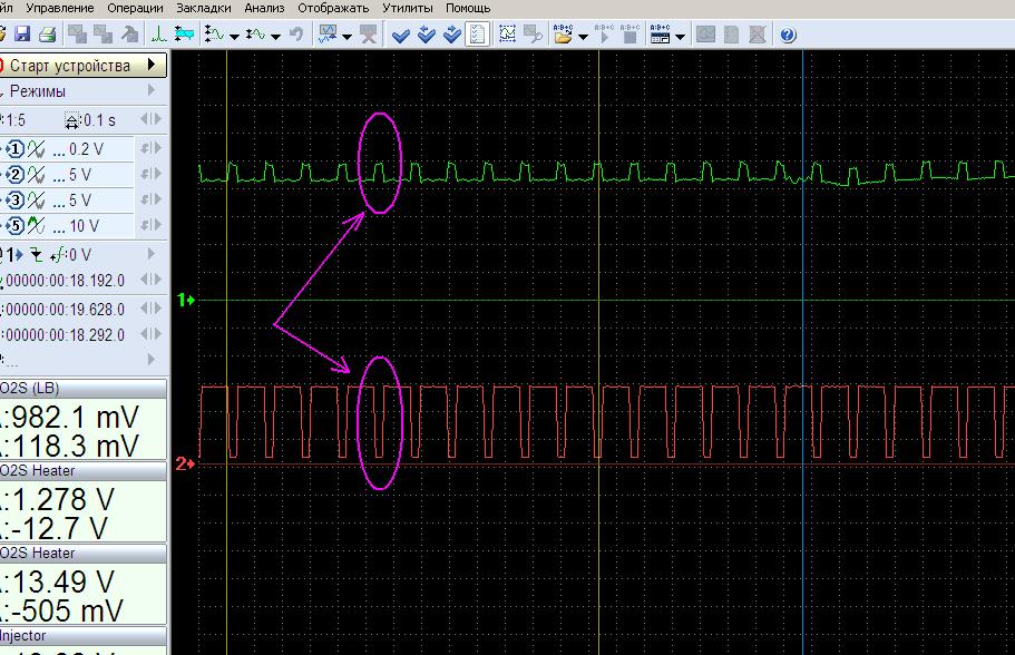 Я имел в виду исходные файлы (.mwf) скринов (до и после замены) осциллограмм той Mazda и заодно, какой код (ы) неисправности был у нее, P0138 (O2 Sensor Circuit High Voltage)?