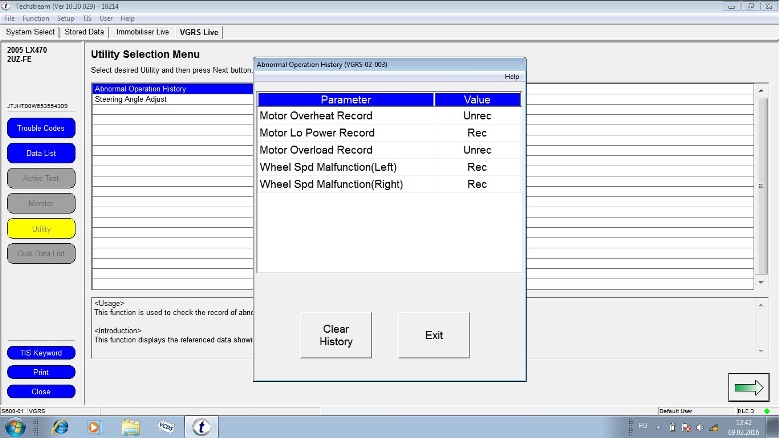 1. Когда автомобиль выехал загорелась ABS/VSC - появился код C1336 - Zero Point Calibration of Deceleration Sensor Undone. Лог прилагаю. В разделе ABS/VSC записана дата где руль поворачивается сначала влево, а затем вправо