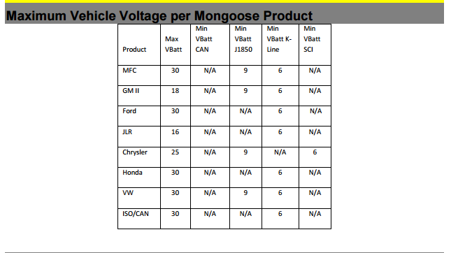 . С другой стороны, "Proposed U.S. OBD regulations do not allow greater than 20 V at the SAE J1962 connector". С третьей, User Manual китайских клонов пишут, что "Supply Voltage: 0v ~ 28V". С четвертой, эквивалент J1962http://www.drewtech.com/products/Mongoose/mongoosemfc.html писал(а):...The Mongoose® is compatible with 1996 and newer Toyota, Lexus, and Scion vehicles over the DLC3 (J1962).