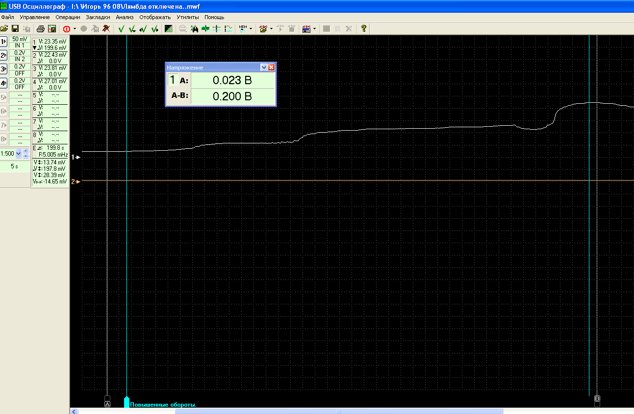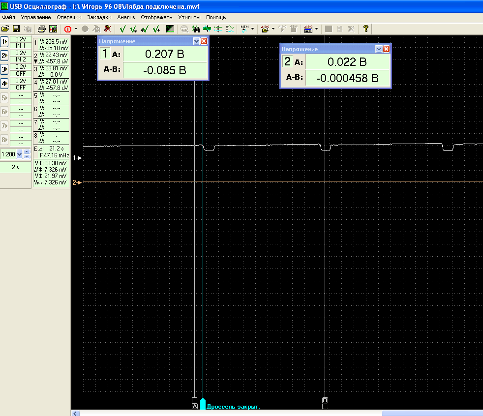 Понятно, что 0,2 вольта, ЭБУ воспринимает как бедную смесь и начинает обогащать...