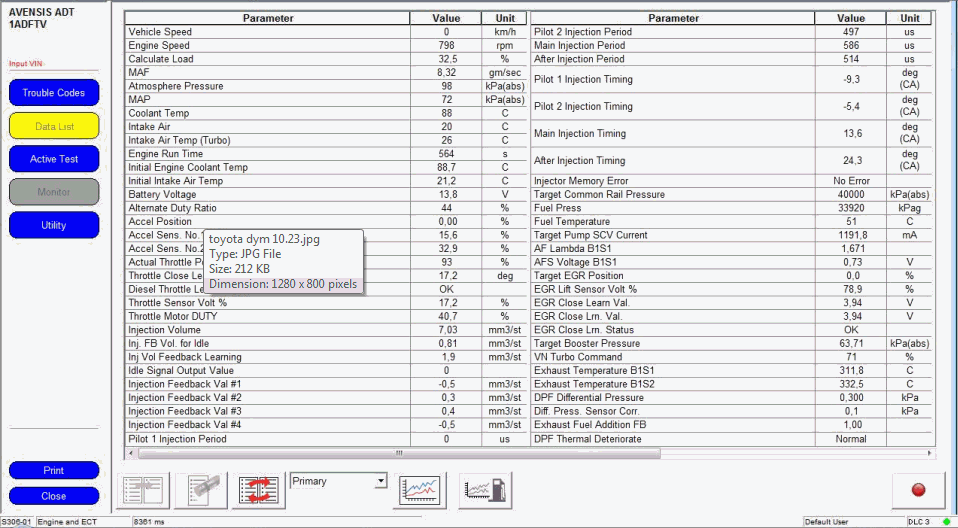 Toyota Avensis D4D, 2.0, 1AD-FTV, 2008 г. На холостых оборотах дыма не заметно, после поездки даже на короткую дистанцию начинает дымить. Дым с запахом не сгоревшего дизельного топлива. В приложении скрины Techstream Data list при дыме: http://images18.fotki.com/v329/photos/5/3049325/12507561/photo-t ...