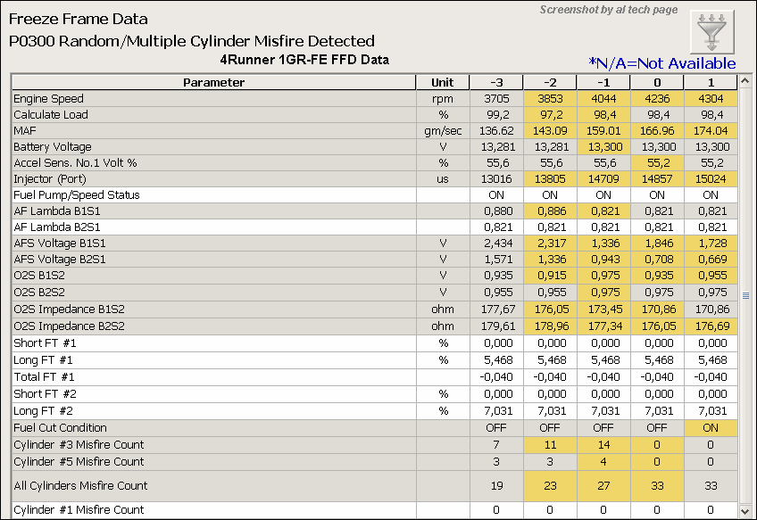 4Runner 1GR-FE Data of DTC P0300 FFD