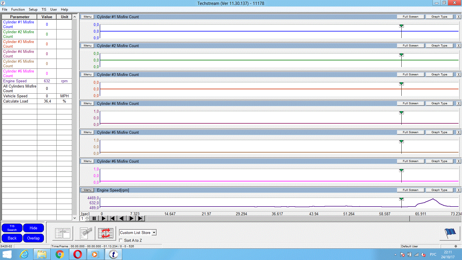 Здравствуйте. Автомобиль 2012 г.в. , американец. Около года назад зажегся check пропуски воспламенения в каком то цилиндре, ему переставили местами катушки и появилась данная неисправность, по конкретному цилиндру не появлялась. Потом автомобиль попал ко мне, Techstream тогда не было. Промыл форсунки для профилактики, особо ничего не поменялось. При резком ускорении чувствовались рывки. Автомобиль супруги друга, плавная езда не доставляет неудобств даме. Но недавно друг сам проехал, почувствовались рывки, зажегся Check. Поскольку появилось новое (и основное для тойота) средство диагностики, теперь автомобиль у меня, сделал Compression check, другие тесты, во вложении представил. Ничего не вижу неприемлимого. Подскажите, какие проверки нужно выполнить по сервисному билютеню при таком коде неисправностей?