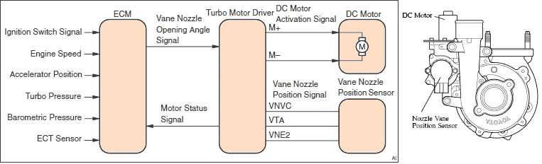 1. Предполагаю, а фотки матчасти могут это подтвердить, что в эту систему входят: турбокомпрессор типа Variable Nozzle (VN), электропривод, датчик положения лопастей и управляющий драйвер: 2. При этом коде БУ переходит в режим FAIL–SAFE, при котором Limits engine power.