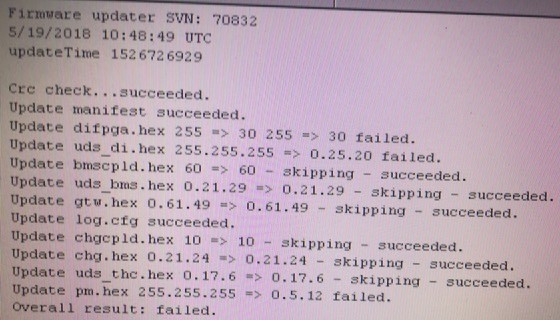 alflash писал(а):... No these updates: UDS Drive Inverter 0.25.13 = > 0.25.20, UDS BMS: 0.21.26 = > 0.21.29, UDS Pedal Monitor: 0.5.10 = > 0.5.12 ...