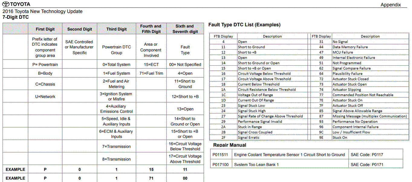 Подобно существующим 5-значным кодам DTC, первые пять цифр представляют тип кода, систему и конкретный компонент или схему. Две дополнительные цифры предназначены для определения типа неисправности.Интересно, как с такими кодами справляются мультимарочники