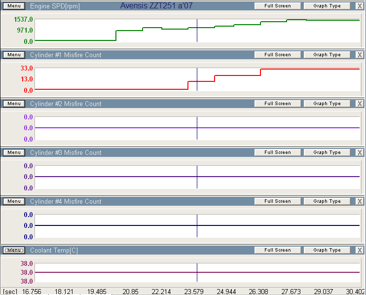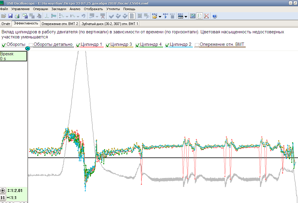 пропусков нет:Хотя и не очень равномерно, но все таки все цилиндры работают. Для надежности меняю местами первую