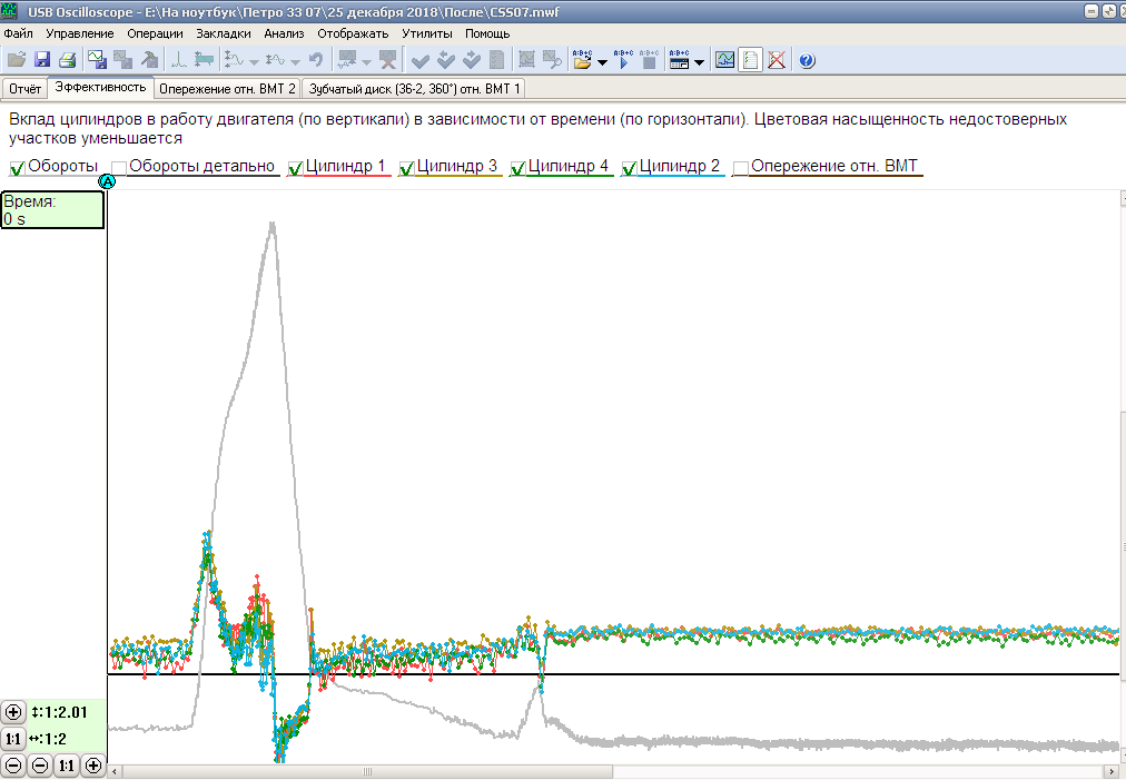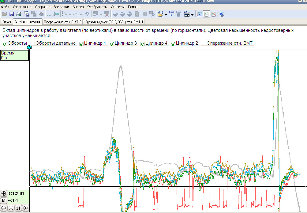 IGT. Опять подключаю Постолограф, но, ярко выраженного дефекта в первом цилиндре не вижу. Да и на