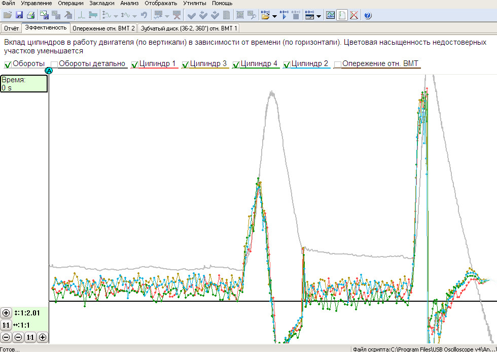 Итак: Постолографом снимаю скрипт Шульгина CCS и вижу пропуски по 1 цилиндру: