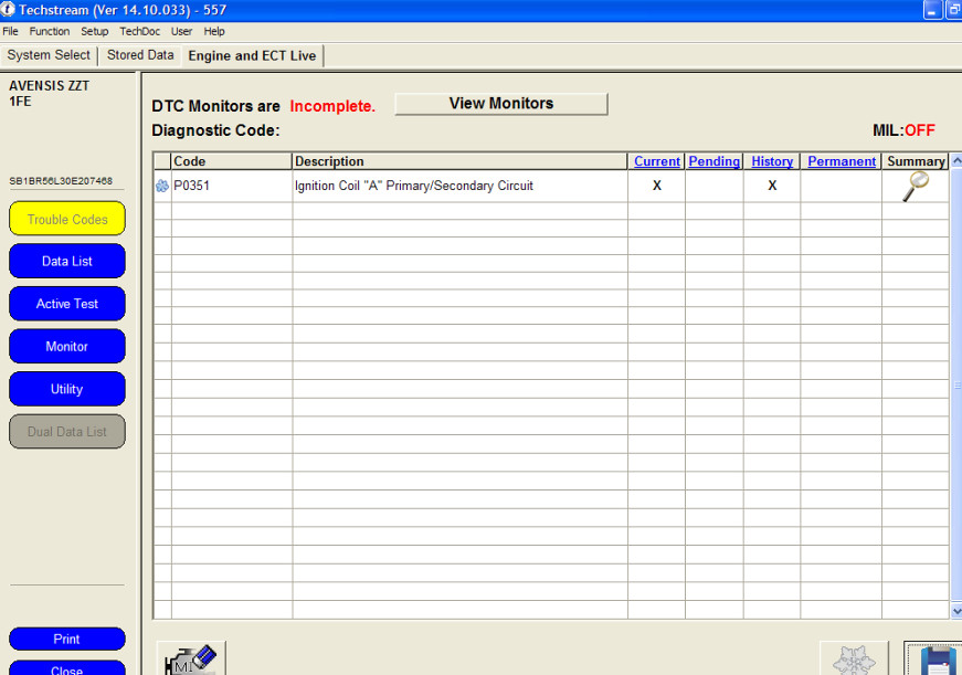 Для этого авто DTCs "Ignition Coil 'N' Primary/Secondary Circuit" (P0351 or P0352 or P0353 or P0354) вроде как актуальны...