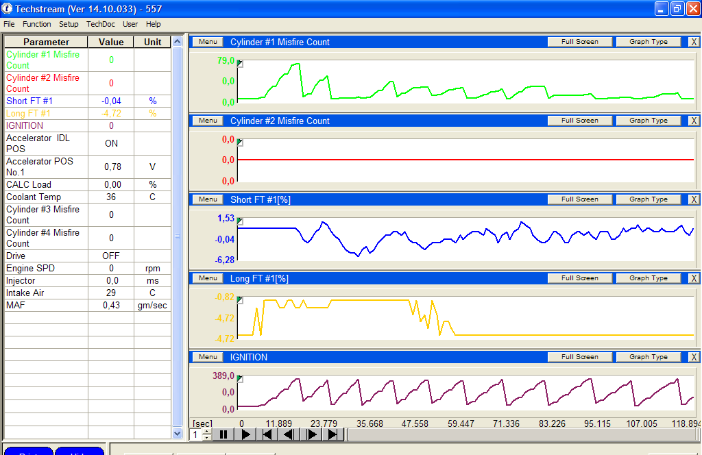 Видимо всё же, стоило начать с проверки программой Techstream, т.к. минуты через три Вы подтвердили бы версию клиента А чуть позже обратили бы его внимание на и выполнили бы соответствующий тест ("A/F Control") для проверки состояния катализатора.Саша-Ирпень писал(а):... владелец сказал, что подозревает неисправную катушку зажигания и попросил очень быстро поставить диагноз, (т. к. заказать запчасть нужно до 12 часов...). Поэтому я начал не с TS, (т. к. с моим знанием программы TS можно было застрять надолго).