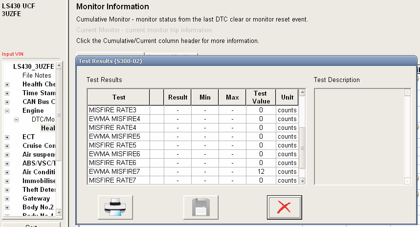 Потом перехожу к активным тестам. Этот "Лексус" 2003 года и выбор тестов у него так себе: