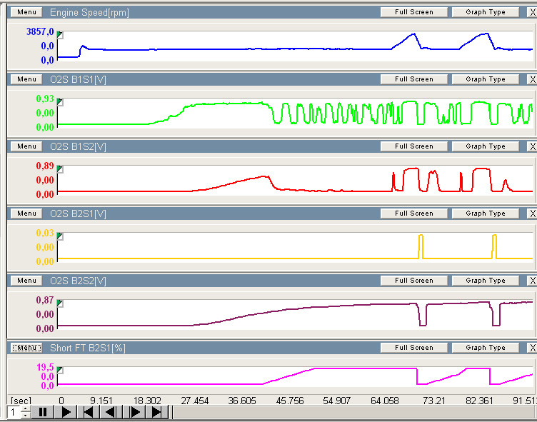 Решил с пропусками пока не терять времени и смотрю кислородные датчики. О2 датчик B2S1 "лежит" в