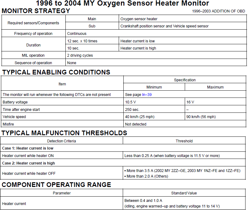 OBD-II 1996 to 2004 MY Oxygen Sensor Heater Monitor