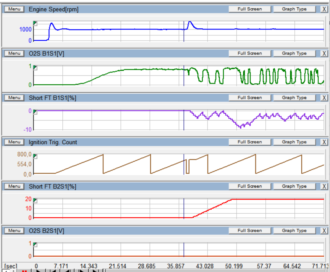 Отключение топлива в цилиндрах подтвердило что все цилиндры работают, а первый О2 датчик во 2 банке