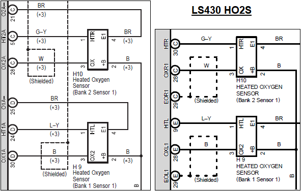 Типичный способ подключения HO2S - непосредственно к БУ только 2-мя проводами каждый.