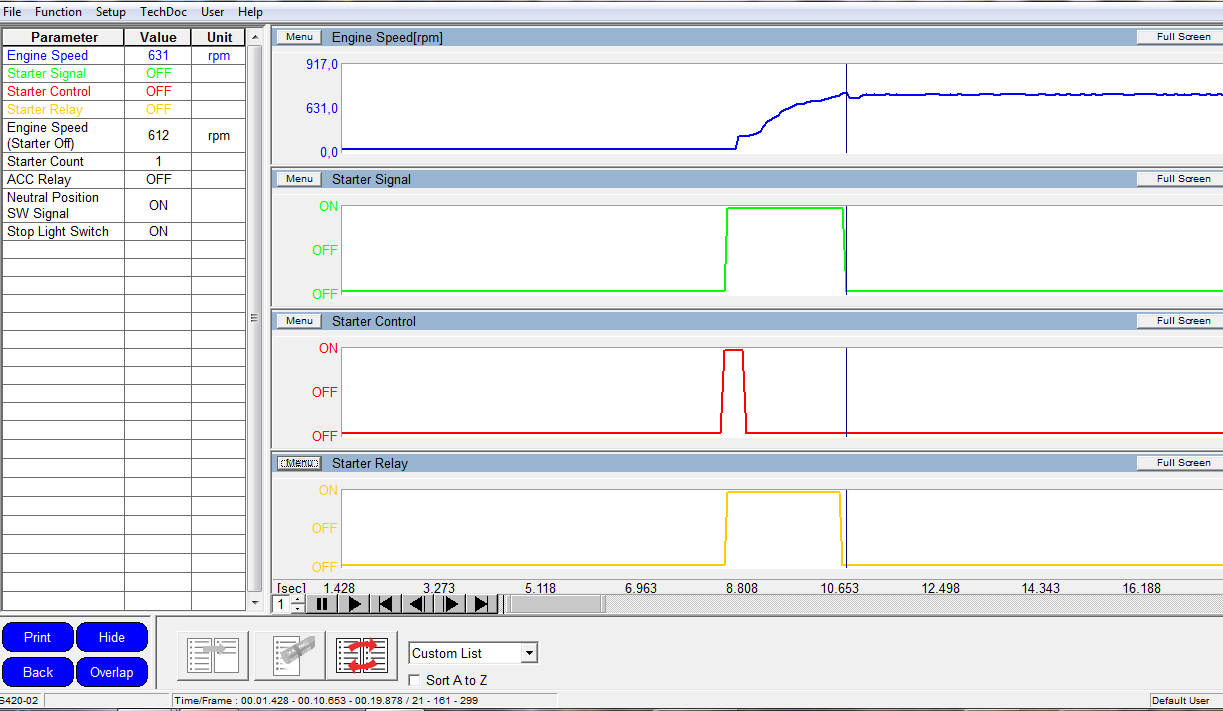 Я имел ввиду не статус того или иного реле/параметра, а фактическое напряжение на управляющем контакте стартера.