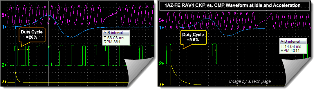 1AZ-FE CKP vs. CMP Waveform at Idle and Acceleration