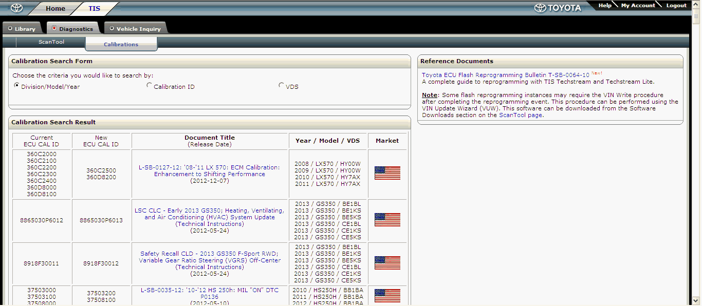 E.g. Lexus Calibration files TSB