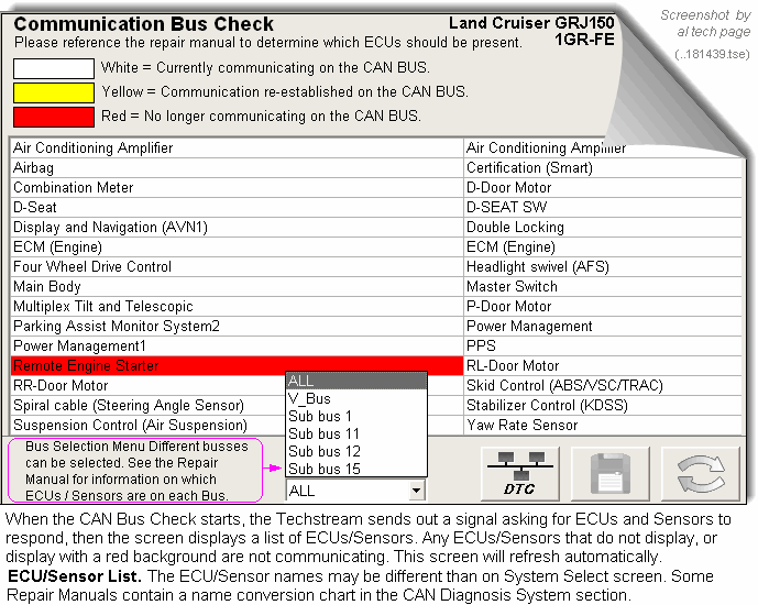Для того, чтобы определить какие БУ, датчики, устройства используют Serial Communication достаточно выполнить процедуру CAN Bus Check (выбор сюжета - кликом на "кнопки" слева):