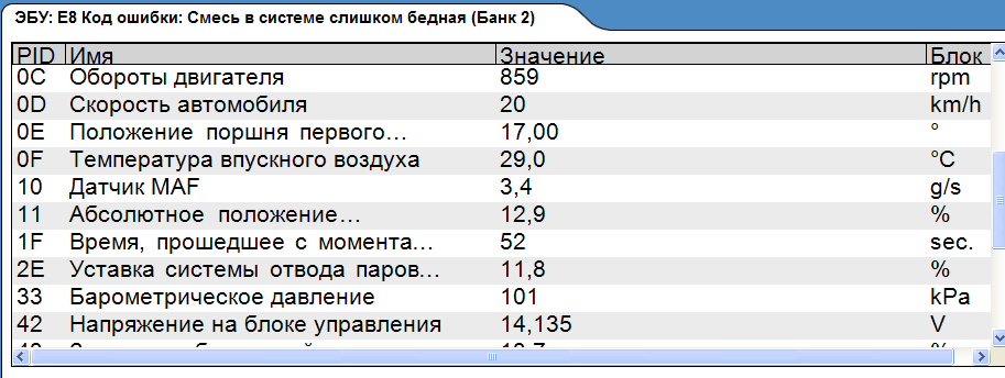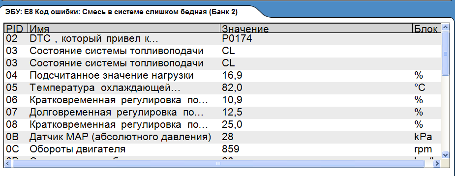 Т.е. rpm, SFT И LFT обеих половинок двигателя, MAP и MAF., чтобы проверить нет ли там "плохой кармы" ГБО.