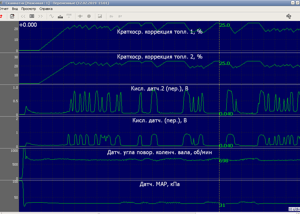 А из общего числа доступных параметров теоретически и для проверки работоспособности режима "отсечки" топлива не помешали бы сведения о состоянии датчика ХХ при резком отпускании педали газа (при больших rpm двигателя).