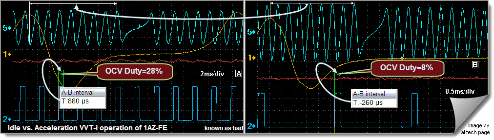 1AZ-FE CKP vs. CMP Waveform at Idle and Acceleration
