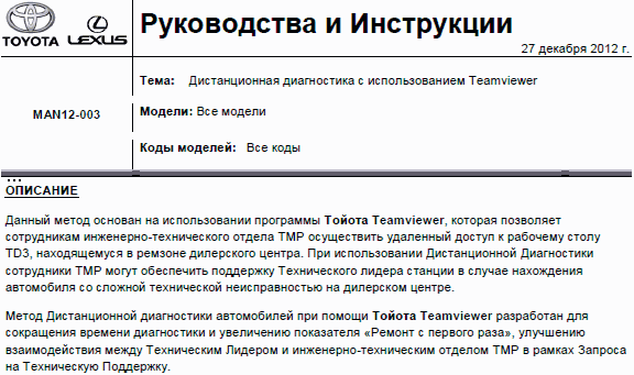Будете смеяться, но оказывается Toyota тоже практикует применение TeamViewer :)