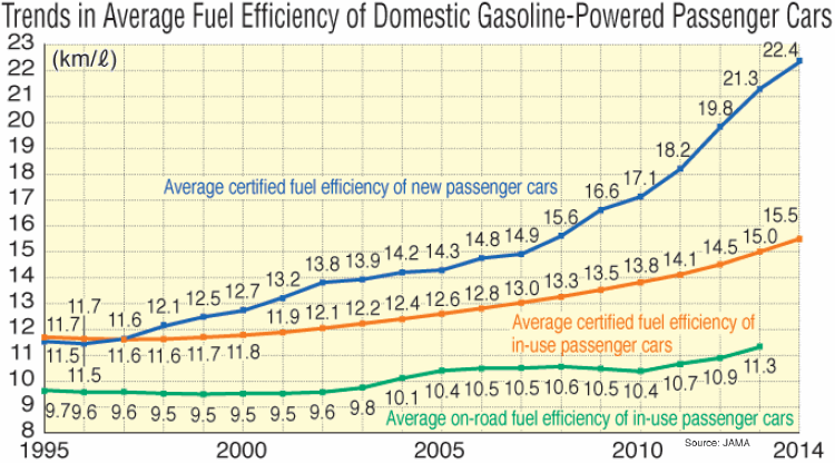 <-Average Fuel Efficiency of Japan Passenger Cars 2011Beginning in 2018, Japan will, for the purpose of global harmonization, replace its JC08 test cycle, currently used to measure exhaust emissions and fuel consumption rates in non-heavy-duty vehicles, with the Worldwide Harmonized Light Vehicles Test Procedure (WLTP).
