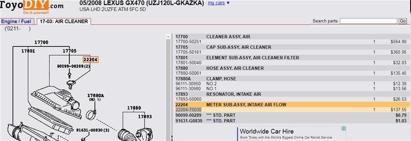 Для вашего авто (Toyota Highlander с 3MZ-FE) этот "показатель" должен быть не более 0.54 g/sec.